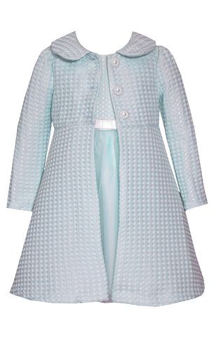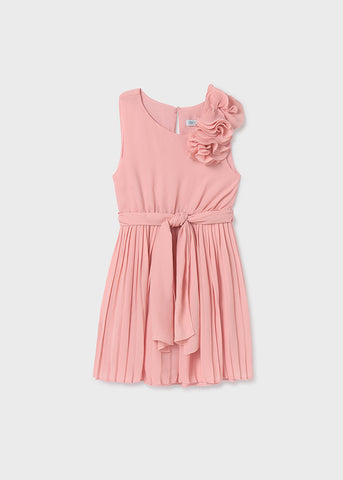 Elegant jacquard striped dress with lining and cancan tulle to give more volume to the skirt. Plackets on the skirt. Ties made in the same fabric. Back closure with invisible zipper. A beautiful and romantic design to wear in the most special moments.