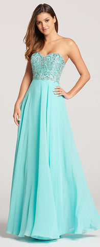 Strapless crack ice tulle trumpet dress with sweetheart neckline. The glitter of the crack ice tulle flows down the length of the dress through the natural waistline, fitted hips and thighs then into the cascading folds of the fuller skirt that starts at the knees and ends in a sweep train.  Removable straps included.