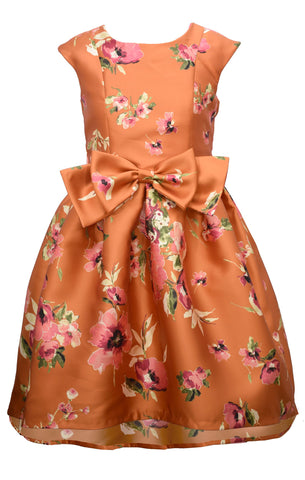 Satin and tulle tea-length full A-line dress with cap sleeves, high-neck bodice encrusted with hand-beaded multi-colored mosaic, tulle covered satin band at natural waist, gathered multi-layered tulle overlay skirt.