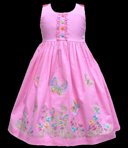 Short sleeved Dress with contrasting details for girl. Round neckline. Opening on the back with an invisible zip. A mix of carefully selected fabrics combined to create a different, unique design. Seams finished up with wave design. Decorative elements: embroidery, decorative contrasting colored strips on the waist.